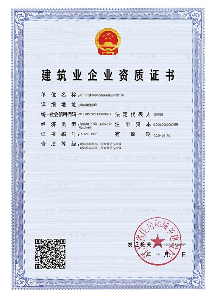 本公司是一家專業從事潔凈技術研究,開發,生產,凈化空調工程設計、制造、施工、安裝、調試一條龍服務的高新技術企業。企業具有二級機電安裝專業承包資質、二級裝修裝飾專業承包資質。